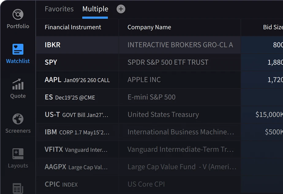 IBKR Desktop combines power and simplicity. Keep your investing workflow in one place to focus on decisions, not navigation.